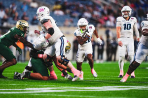The freshman quarterback sealed matters for the Monarchs in the final three minutes. First, he delivered a third-down conversion with a tough 16-yard run. On the next play, he faked a handoff, kept the ball, and bolted through the heart of USF’s defense.